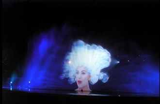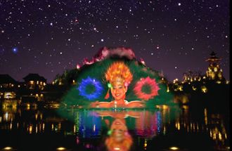 High-pressure water pump and a special water curtain generator will be sprayed from the bottom up high-speed water to form a spray of white water curtain, as a projection background, the computer signals and other video signals through the projection device projected on the water curtain , That form a water screen movie.